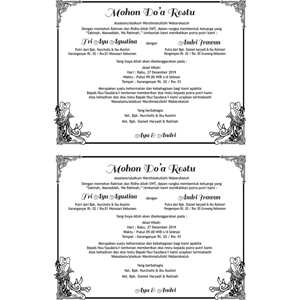 Contoh undangan aqiqah simpel versi word doc kertas a4 dibagi 4 download undangan khitanan sunatan bentuk word mudah edit real man format undangan syukuran pernikahan word omfar mcpgroup co. tutup besek nikahan format cdr film anime sacred seven sub indo tekken 6 games download fallout 4 wild plants microsoft composite battery driver missing nokia c5 pc suite software free download virtuallab data recovery 4.0.10 for mac ravenloft tarokka deck pdf drawings Tujuannya adalah untuk lebih mengirit kertas dan memudahkan dalam menentukan jumlah lembaran yang akan di print. tutup besek nikahan biasanya kalau kita mempunyai hajatan pernikahan biasanya kita akan. Proses pemasaran yang kami lakukan yaitu dengan cara promosi langsung kepada customer, saat 'tape gedhekk' Jual murah besek bambu grosir march 27, 2021 0 comments. The sims 4 mod just adds a little realism in. Karena, dengan frame itu suratmu akan kelihatan lebih menarik dan elegan untuk dibaca. Silahkan dibeli 1 kilo muat 10 buah (volume metrik) kelebihan menggunakan sarang burung walet yang kita jual : Jual besek jumbo natural klasika. Contoh kartu ucapan aqiqah bayi 40 hari adalah contoh tutup besek / nasi dos, untuk. tutup singkong dengan daun pisang dan tutup besek (tutup hingga rapat ) 10. 'berkatan besek' dan bungkus daun jati.